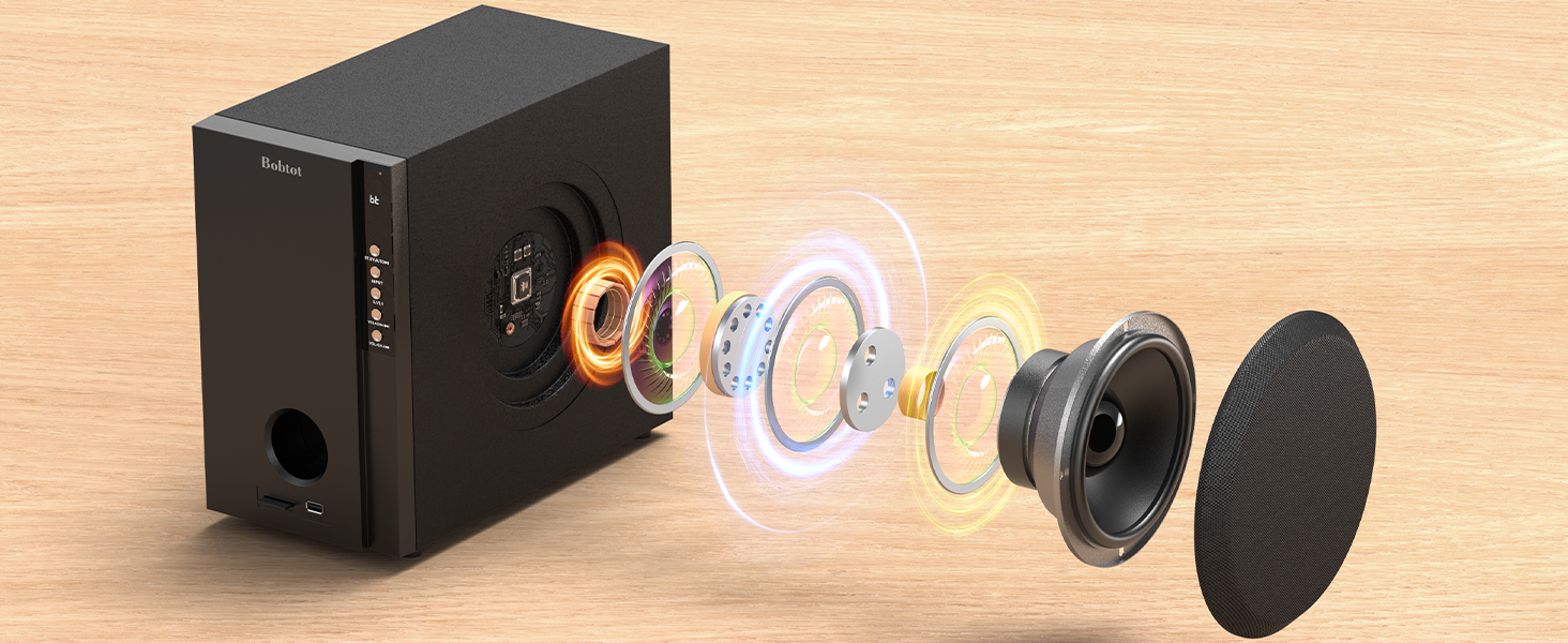 600W Peak, Larger bass drivers and freer diaphragm movement widen the soundstage, delivering the powerful bass that only an external subwoofer can provide.