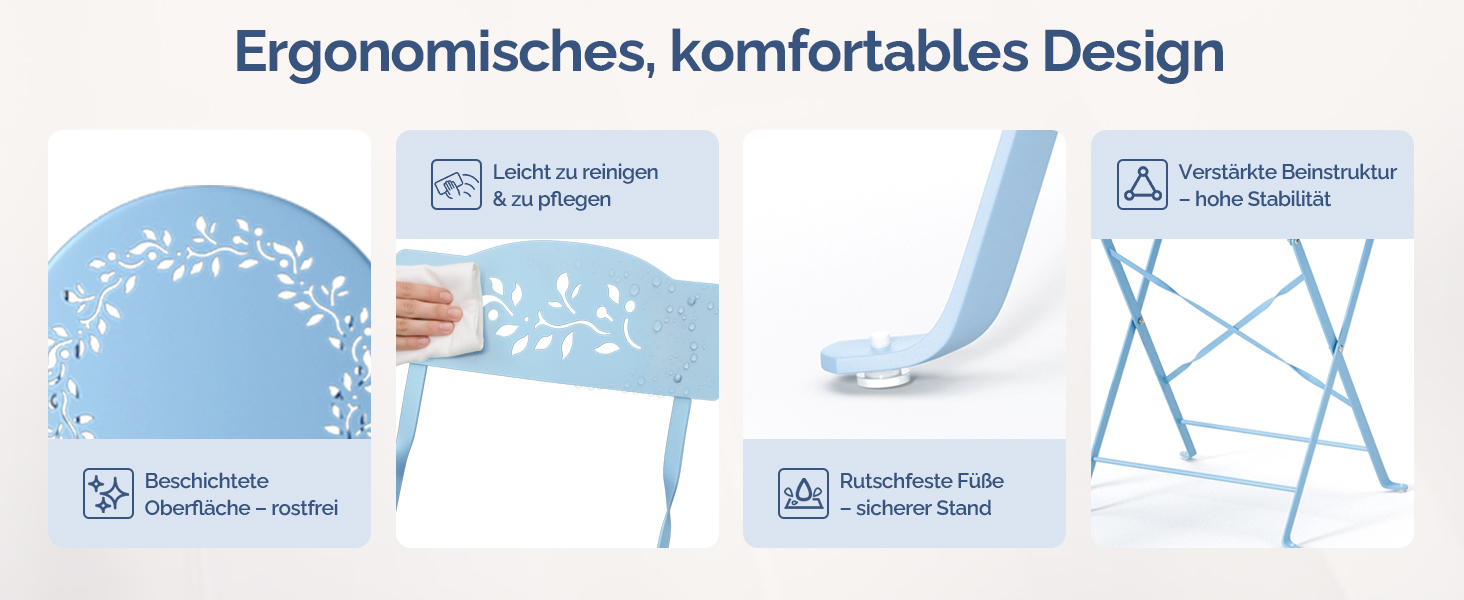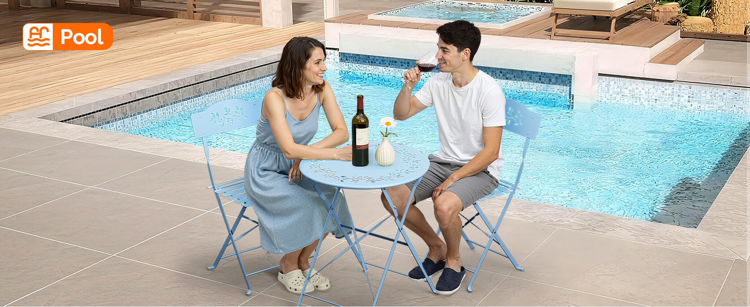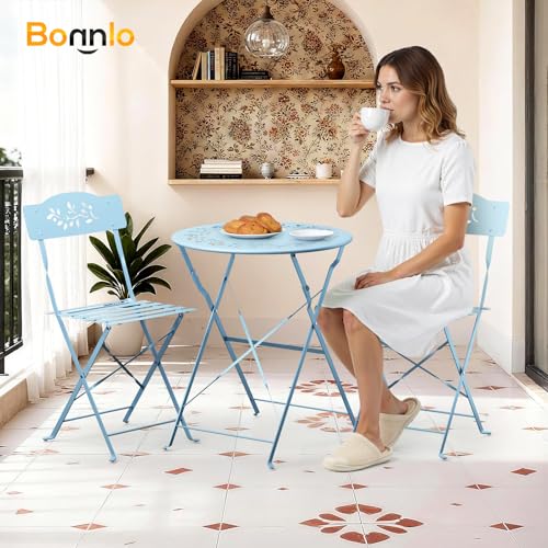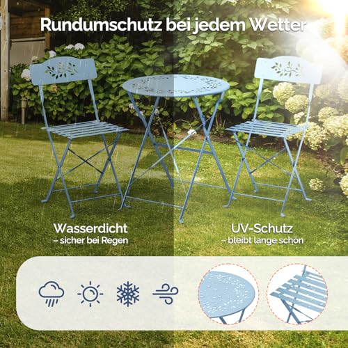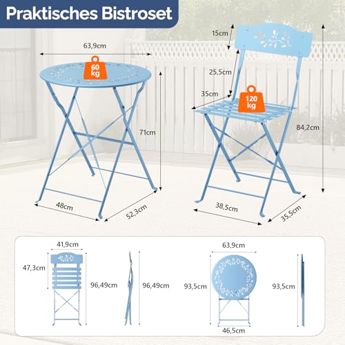 - [Elegant Design with Weather Resistance]: Featuring beautiful olive leaf patterned cut-outs on a light blue frame, this bistro set combines elegant aesthetics with practical durability. Made from robust steel with weather-resistant coating, this garden furniture withstands outdoor elements while adding decorative appeal to your space. The intricate design doesn't compromise strength, ensuring your folding tables and chairs remain beautiful and functional through seasons of use.