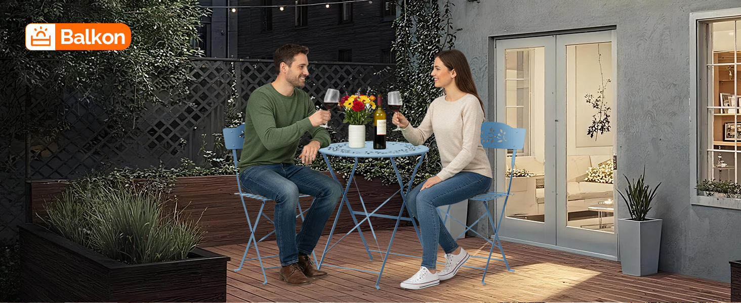 - [Space-Efficient Folding Solution]: The innovative folding design makes this bistro sets for 2 for garden ideal for space-conscious homeowners. Each piece folds completely flat for compact storage when not in use, solving storage problems in smaller outdoor areas. Perfect for balconies, compact patios, or cozy garden nooks, these small table and chairs provide full-sized comfort without permanent space commitment, offering flexibility for changing outdoor arrangements