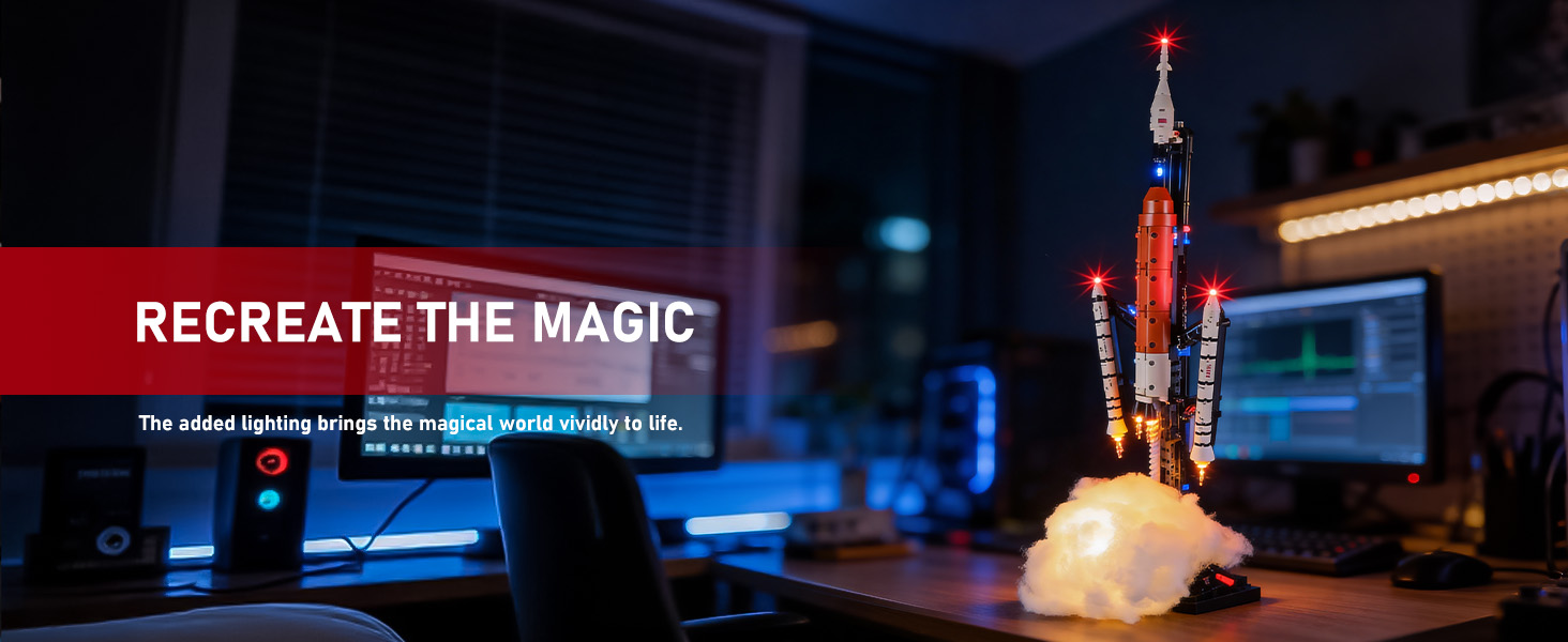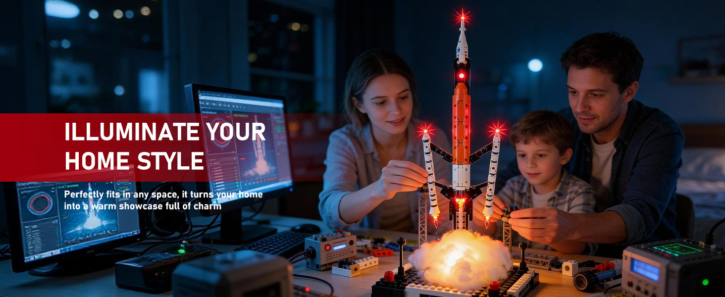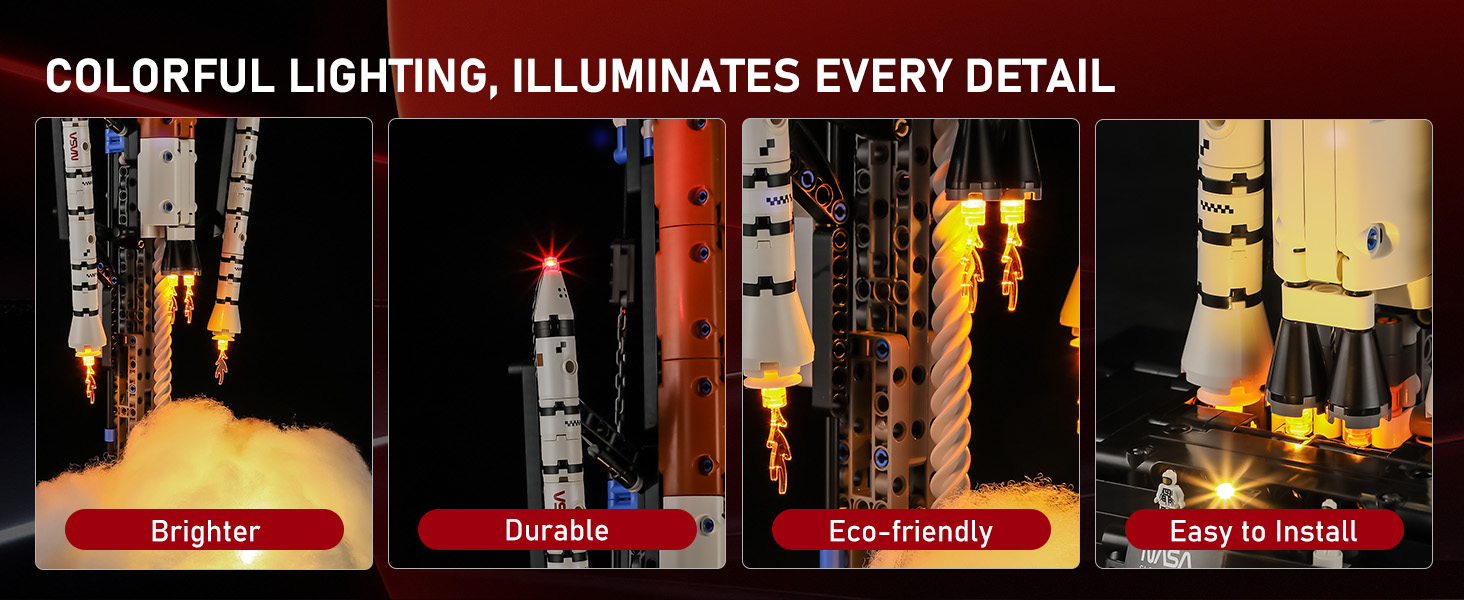 【Smarter Lighting, Cleaner Look】Say goodbye to harsh glare and messy wires! Our patented 2.0 enclosed light bricks provide soft, while specially designed cable-hider bricks keep your lego NASA Artemis Space Launch System Rocket kit tidy and beautiful.