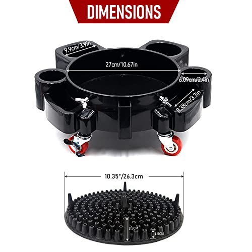 Bucket Dolly 5 Gallon,360°Rolling Car Wash Buckets Dolly with Brakes Compatible,Removable Insert for 2.5 to 5 Gallon Buckets, Car Detailing Auto Cleaning and DIY Projects