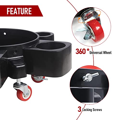 Bucket Dolly 5 Gallon,360°Rolling Car Wash Buckets Dolly