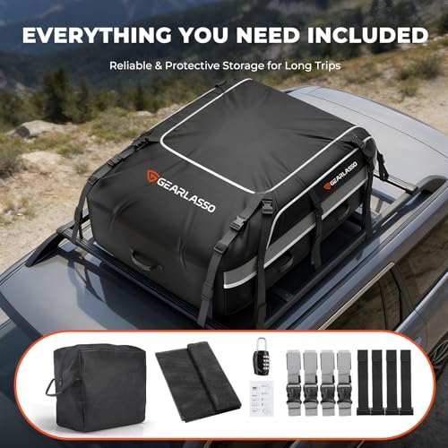 Car Roof Bag 21 Cubic Feet, Waterproof Rooftop Cargo Bag for Cars SUVs & Vans, 840D Heavy-Duty PVC, Universal Fit With or Without Roof Rack- Anti-Slip Mat,Combination Lock,6 Door Hooks,4 Extra Straps