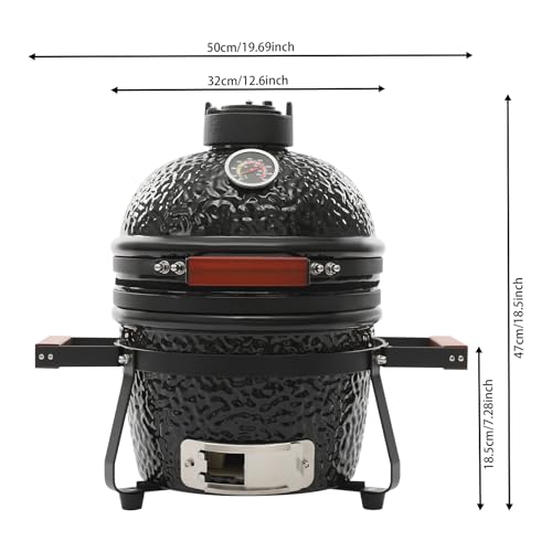 Ceramic Charcoal Grill & Smoker, 12.6 Inch Portable Outdoor