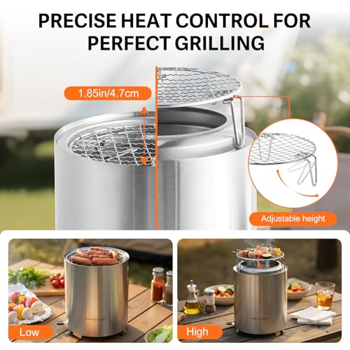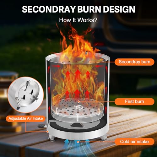 - Advanced Secondary Combustion Technology: Equipped with an upgraded dual-burn system that re-burns gases and fine particles, this table top fire pit delivers a cleaner, more efficient fire. The result is reduced smoke, improved fuel efficiency and a more eco-friendly outdoor cooking experience