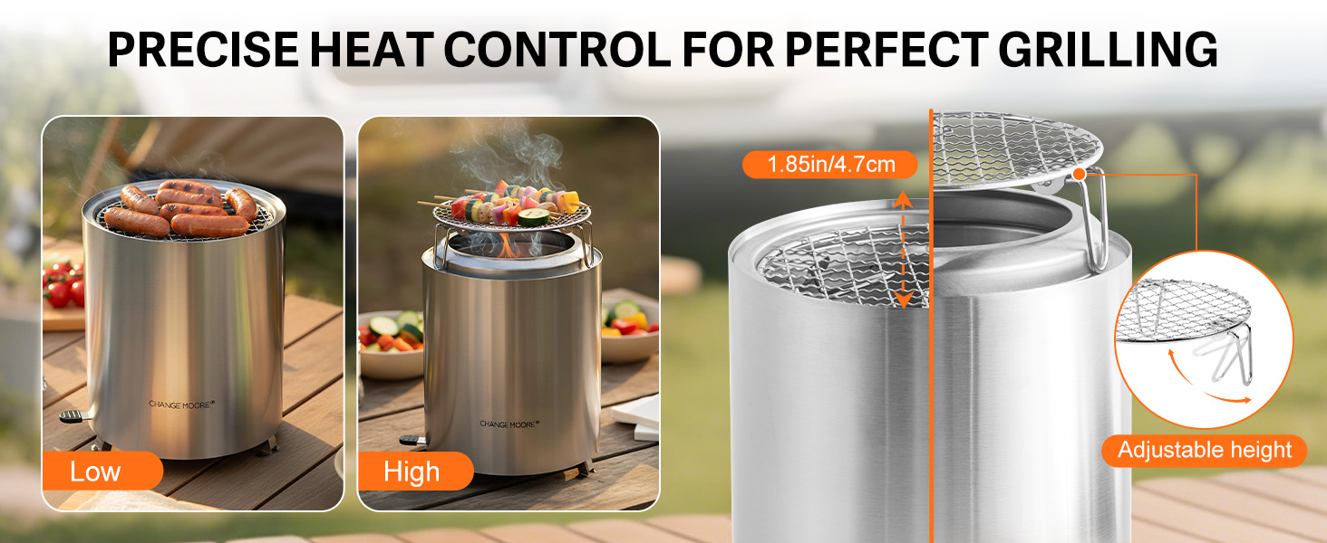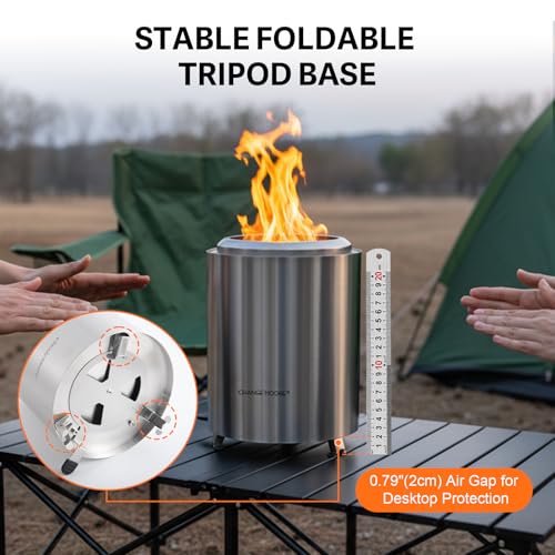 - Stable & Secure Base Design: The smokeless fire pit rests on three sturdy support legs to prevent tipping, with a 2 cm gap beneath the base to protect your tabletop from heat. Perfect for stable, safe use during cooking