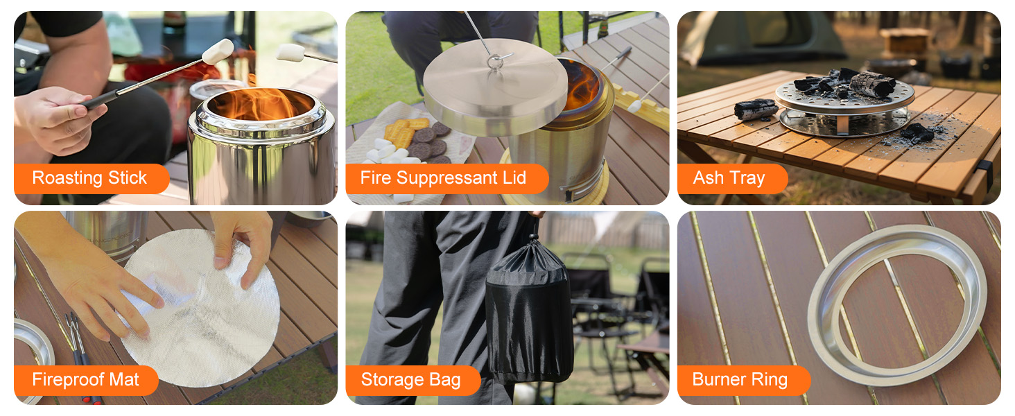 - Convenient & Easy to Maintain: Indoor fire pit set includes a removable ash tray for quick cleaning, a fire-concentrating ring for steady flame focus, extendable stainless steel forks with non-slip handles, a carry bag for portability, and a waterproof, fire-resistant mat that’s simple to clean after use