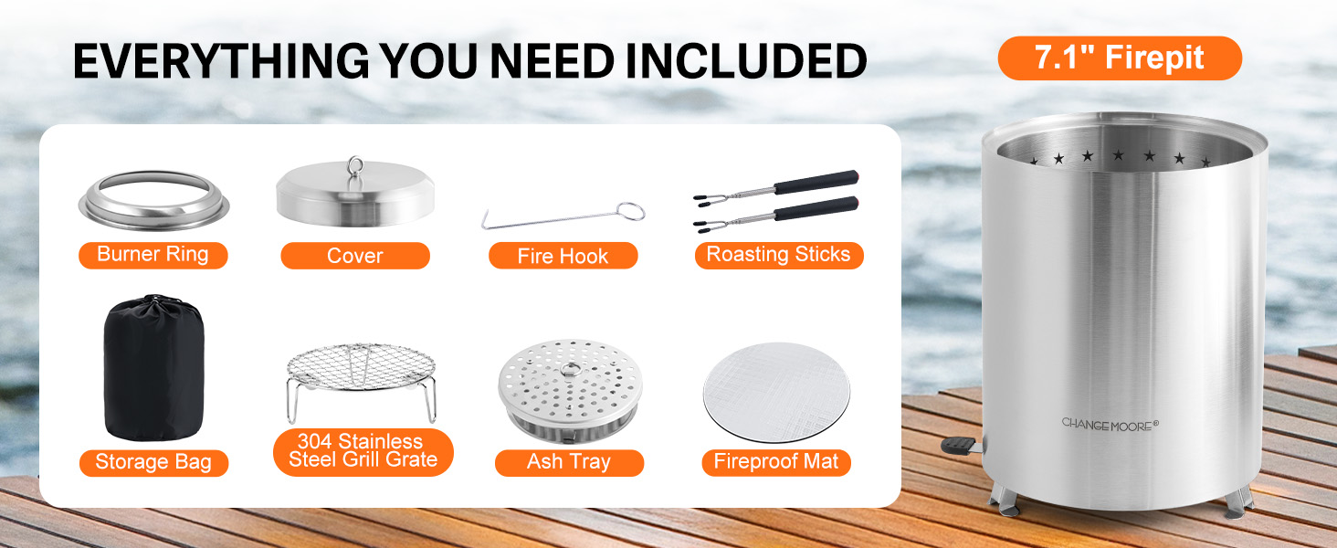CHANGEMOORE Tabletop Fire Pit Set & Carry Bag, Smokeless