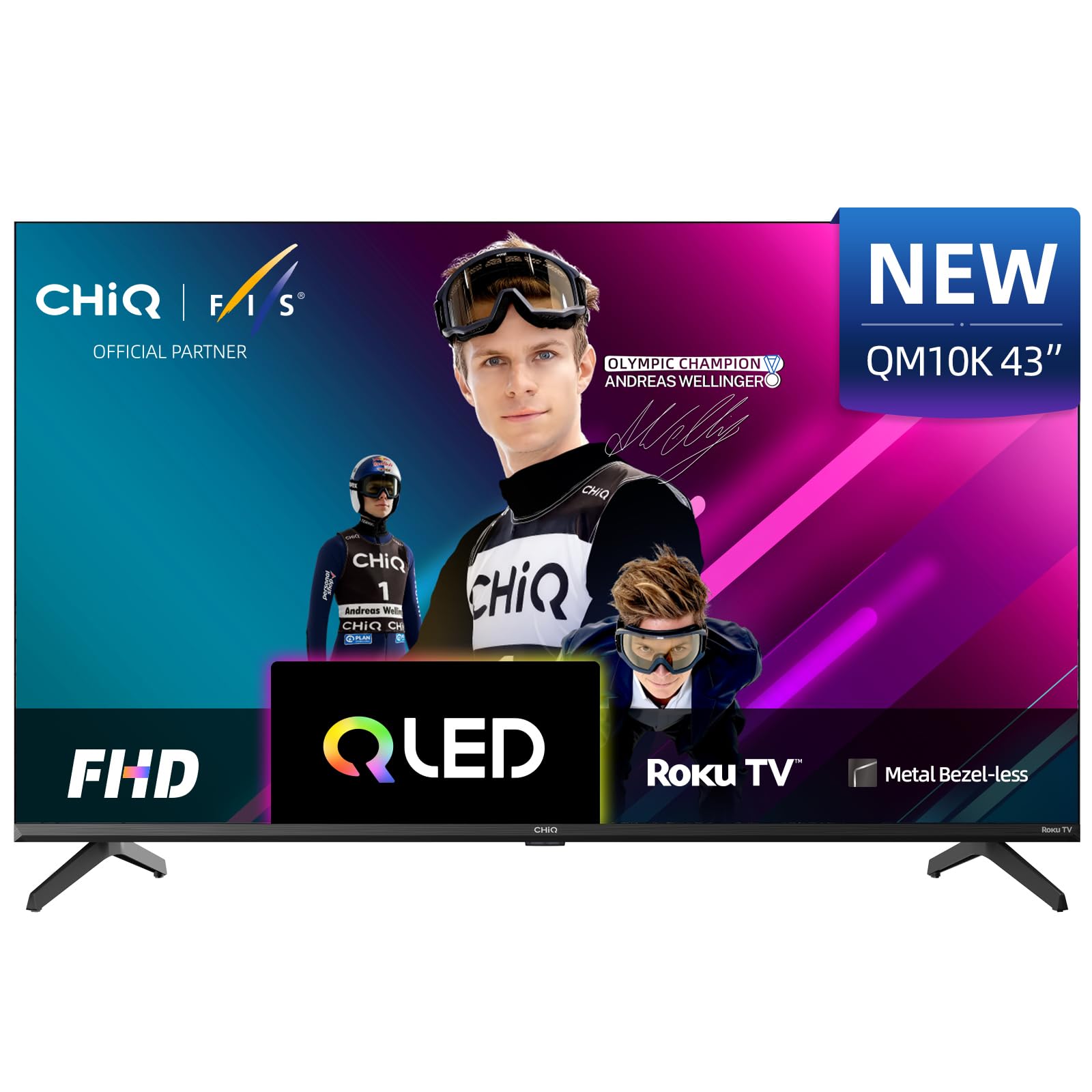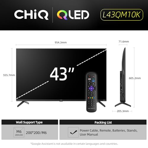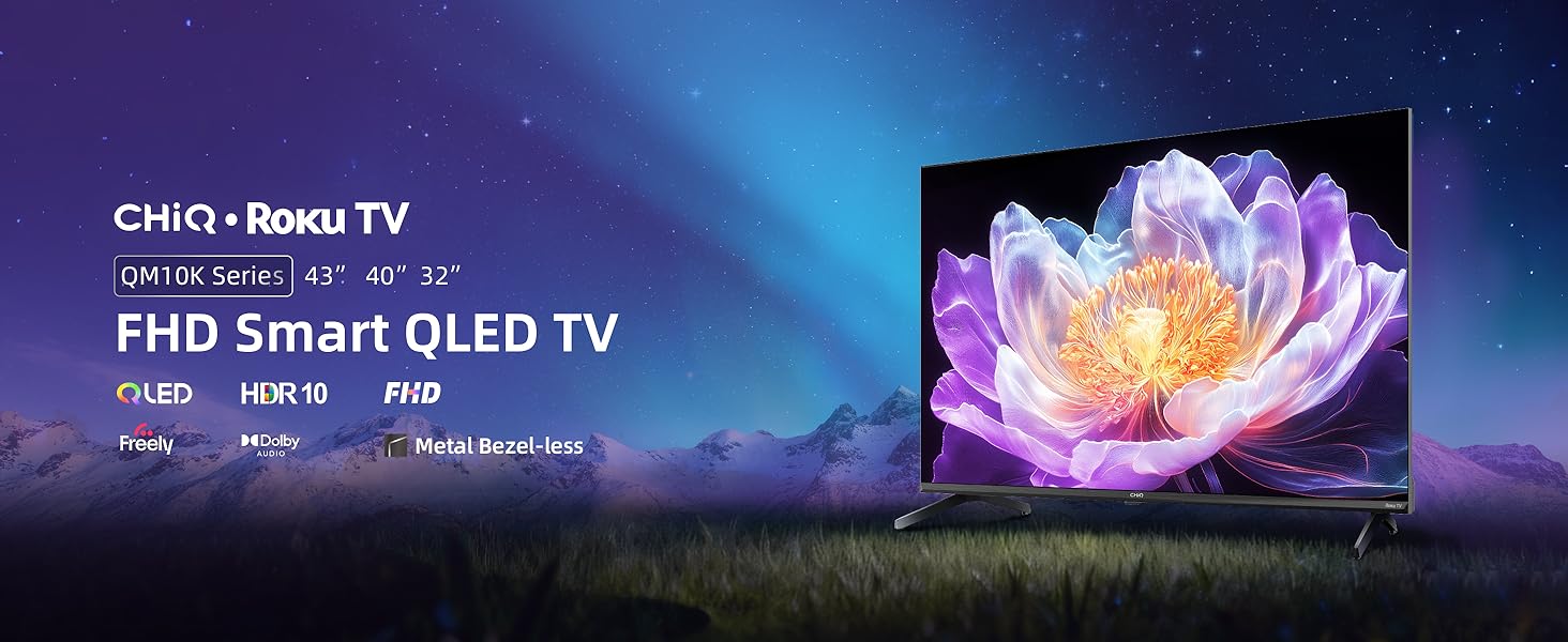 CHiQ L43QM10K 43 Inch Smart TV, Full HD QLED PRO Display, DCI-P3 90% Wide Colour, HDR10, ROKU TV OS