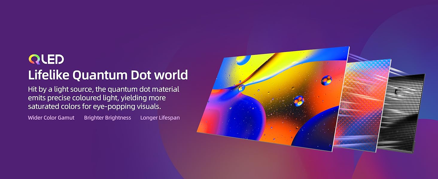 1 Lifelike Quantum 2 Rich vibrant colors 3 Viewing Pleasure 4 Detailed Visuals 5 Immersive Surround Sound 1 Enjoy show 2 Roku TV 3 Streaming Simplified 4 Your Streaming Sidekick 5 Available up to date 1 Fit your home 2 Bigger Screen 3 Stay connected 4 Ultra-thin 5 Metallic Bezel-less