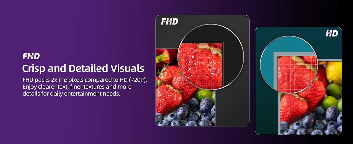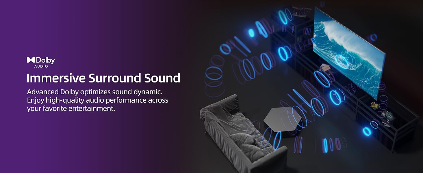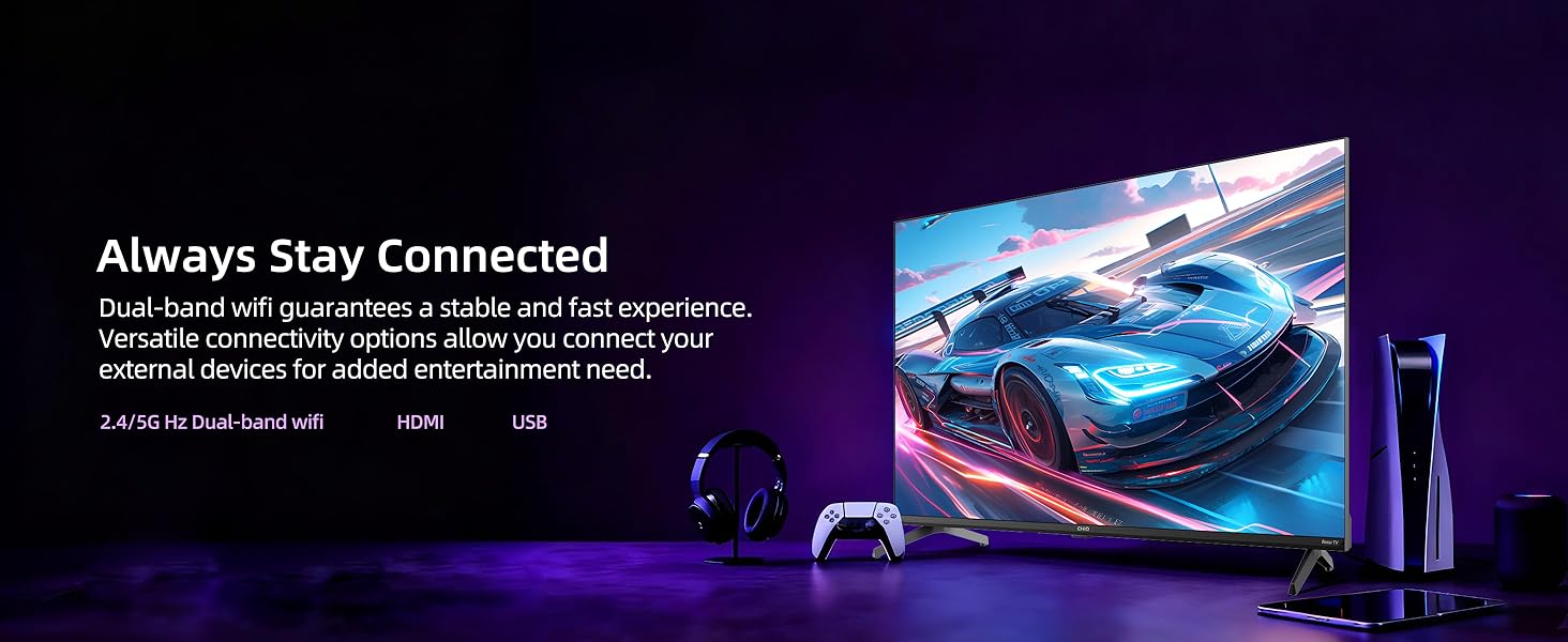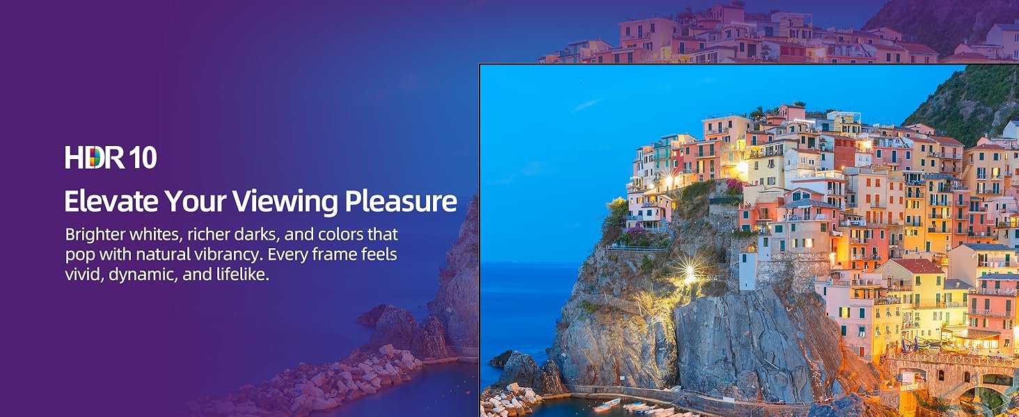 Vivid Full HD Resolution with HDR10 Enjoy crystal-clear picture quality with Full HD resolution. HDR10 technology enhances the contrast and color performance, ensuring deeper darks, brighter highlights, and a wider range of colors for a dynamic and true-to-life viewing experience.
