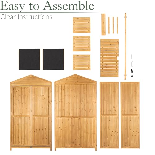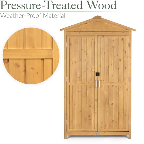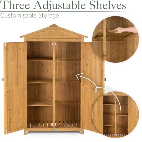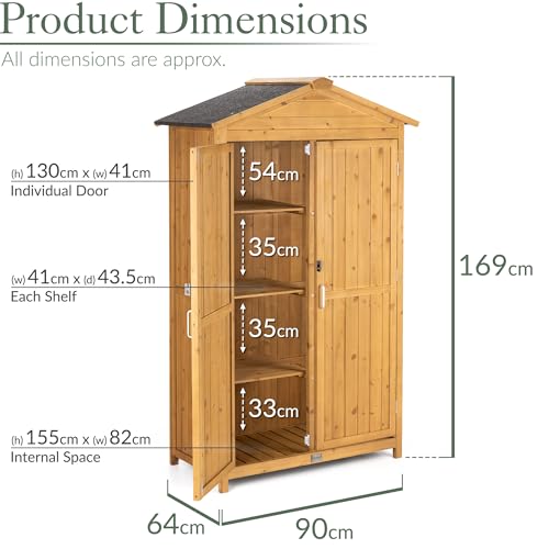 Christow Small Double Door Garden Shed – Treated Wood, Tall Wooden Outdoor Storage, Slim Utility Shed, Three Configurable Shelves, Lockable Doors, Sloped Roof, H169cm x W90cm x D64cm