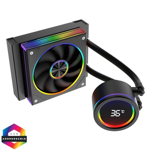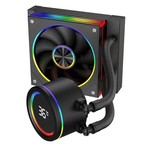 CiT Saturn 120mm AIO CPU Liquid Cooler – 120mm Radiator – 120mm Saturn ARGB PWM Fans – Smart Digital CPU temperature Display – AM5, AM4 – LGA 1700, 1200/115X, 1366, 2011, 2066 Compatible | Black