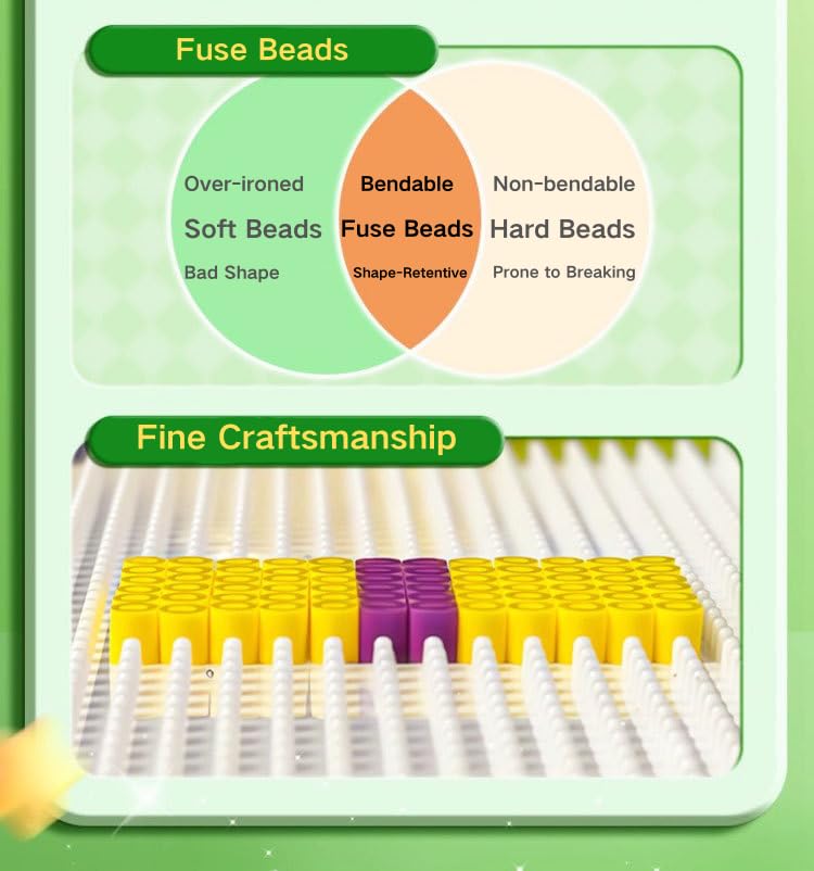 - 【Kid-Friendly & Easy to Use】: Made of reliable materials, suitable for kids aged 4+. Simple crafting process—arrange beads on pegboards, iron with included paper, and finish! Note: Adult supervision required for kids under 5, especially ironing.