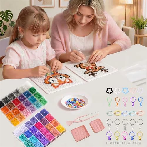 - 【All-Inclusive Accessories Set】: Comes with a portable tote bag, 1 bell charm, 1 bead pin, 6 buckles, 2 lanyards, 6 star charms, 2 mixing bowls, 1 bead spoon, 2 sorting boxes, 6 safety pins, 2 ironing papers, 2 pendants, 1 tweezer, 1 bead shovel, 25 key rings, 8 chains and 4 pegboards. Everything for immediate crafting!
