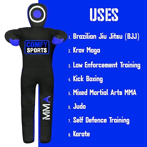 - ✅ ALL IN ONE: The Comfy Sports Grappling Dummy is ideal for multiple combat sports including MMA, Boxing, BJJ, Judo, Karate, and Wrestling. Designed in a human-shape structure, it helps you improve your techniques, master new skills, and safely practice takedowns, submissions, and grappling drills just like training with a real partner.