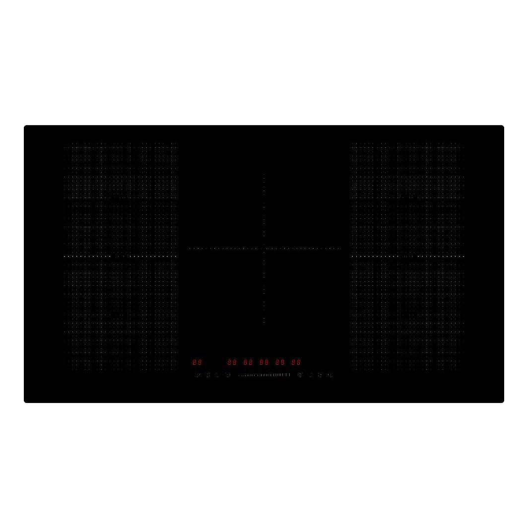WIDE FLEX INDUCTION HOB WITH 5 ZONES – A 90cm flex induction hob designed for larger kitchens, offering five zones including four flexible areas for bigger cookware. Ideal for multi-pan cooking and busy meal preparation on fitted kitchen worktops.