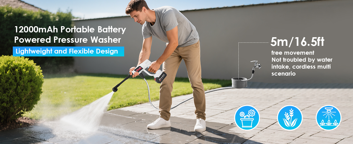 ⚡【Portable, Lightweight & Easy to Use】 – Compact, cordless, and ready to carry anywhere. Clean faster and easier, ideal for car washing, patio cleaning, garden furniture, or outdoor adventures. Quick setup, no fuss.