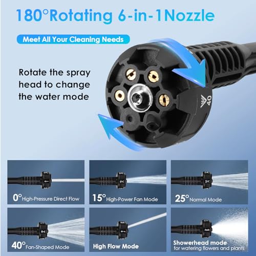 【6-in-1 Adjustable Nozzle for Every Task】 – Switch effortlessly between six spray patterns (0°, 15°, 25°, 40°, jet, and shower). From stubborn mud and grime to gentle rinsing of plants, pets, or muddy boots, this nozzle adapts to every cleaning need.