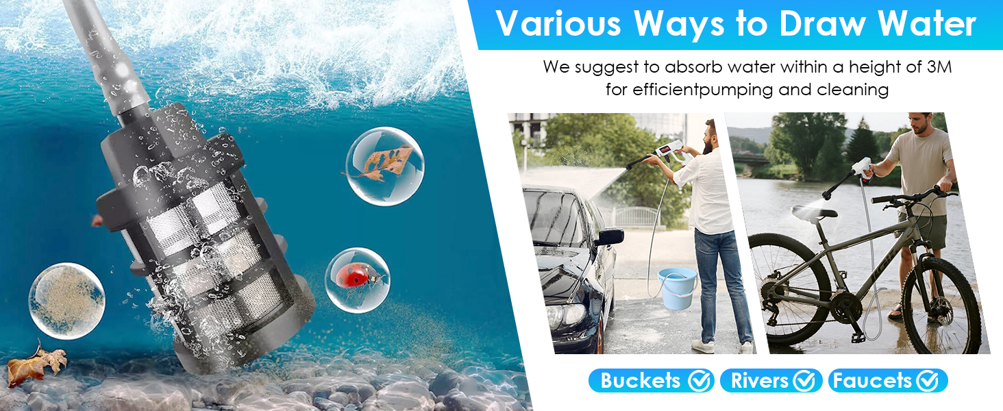 【Draw Water Anywhere – Safe & Efficient】 – The 5m hose and built-in filter allow water extraction from buckets, pools, or rivers (<1.5m) safely. The filter protects the motor from leaves and debris, ensuring longer life and cleaner performance. Not suitable for salt water.