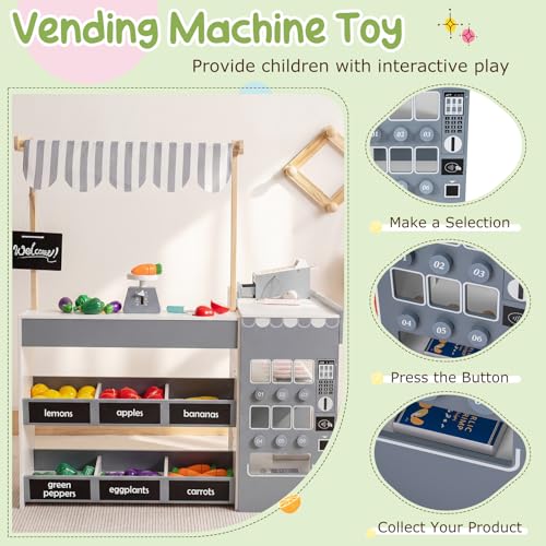 - 【Interactive Vending Machine】The kids grocery store playset includes a vending machine that boosts engagement by letting children select their favorite drinks in a fun and playful manner. Simply make a selection, press the button and collect your product, all of which helps to enhance imaginative play.