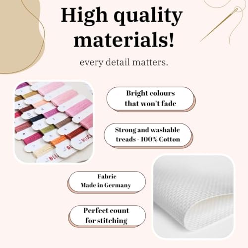 We use only the highest materials available such as Oeko-Tex certified Luca-S Threads along Zweigart fabric & Hemline Needles.