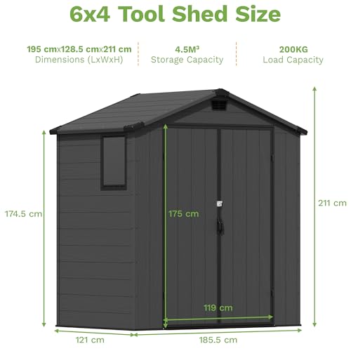 - Spacious & Organised Storage for Your Entire Garden:Say goodbye to clutter! This 6x4ft shed provides ample 5.02 cubic metres of internal space, perfectly designed to store lawnmowers, bicycles, garden tools, patio furniture, and even standard wheelie bins. Keep your garden, patio, and backyard tidy and organised all year round.