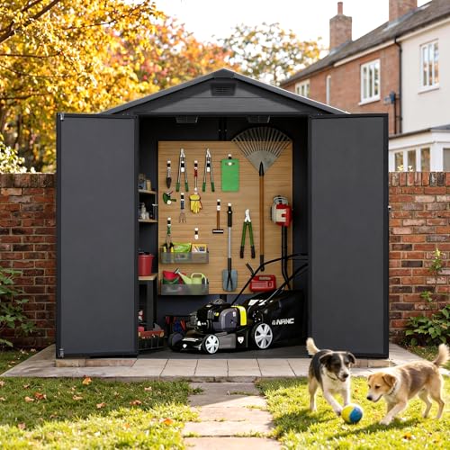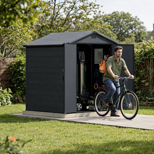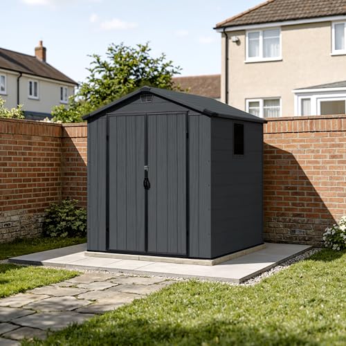 - All-Weather Protection Built for the UK Climate:Engineered to withstand British weather. Constructed from high-density, UV-resistant resin, it is fully waterproof, rust-proof, and fade-free. The apex roof efficiently sheds rainwater, while integrated ventilation prevents condensation and mildew, ensuring your belongings stay dry and fresh.