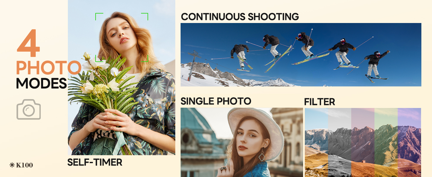 · 【Multifunctional Video/Vlogging Camera for YouTube】:This camera has multiple functions, not only for taking photos and recording videos, but also as a web camera, which is very convenient. As long as you rotate the mode dial, you can choose the mode you want, including continuous shooting, slow action, delayed shooting, beauty photography, and more. And there is a fill light, which makes shooting clearer in the dark