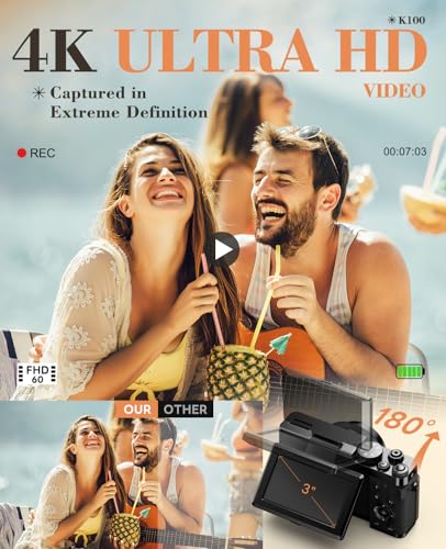 【48MP Digital Camera with Flip Screen】:The digital camera uses the latest CMOS measurement system to capture high-definition 4K videos and 48MP photos, without the need for complex manual settings, while automatically providing natural color images. Cameras for photography has a 3-inch screen and can rotate 180 degrees, allowing you to see what's being recorded or view it while taking a vlog from any angle.