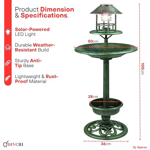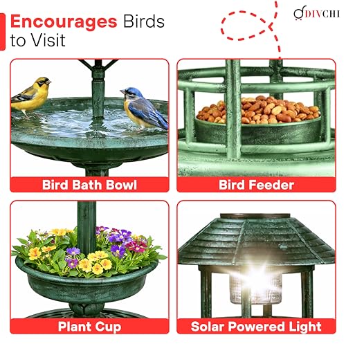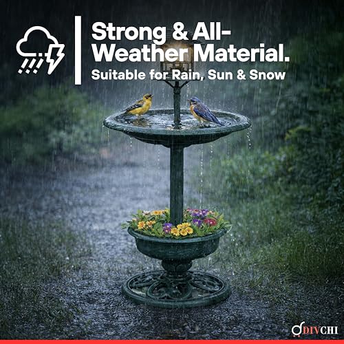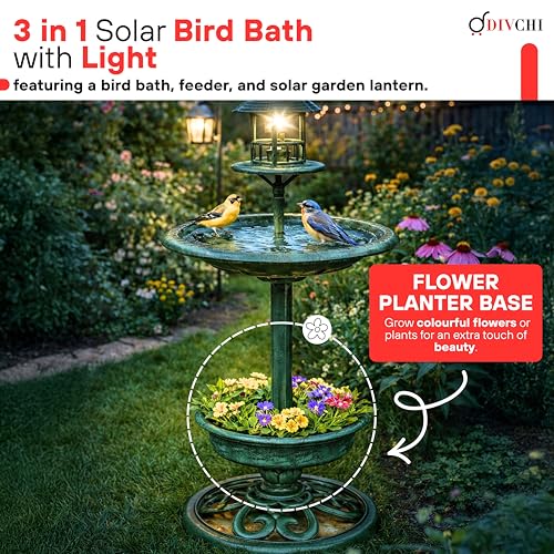 - DIVCHI 3-in-1 Solar Bird Bath & Feeding Station – Weatherproof Freestanding Garden Bird Feeder, Planter & LED Outdoor Ornament