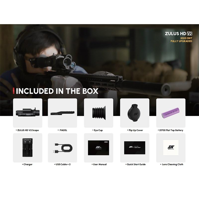 - 【Complete Package & Support】 Comes ready to use with a FREE dual battery kit, charger dock, 32GB memory card, and a 20MOA Picatinny mount. DNT ensures quality and provides dependable support for a confident user experience.