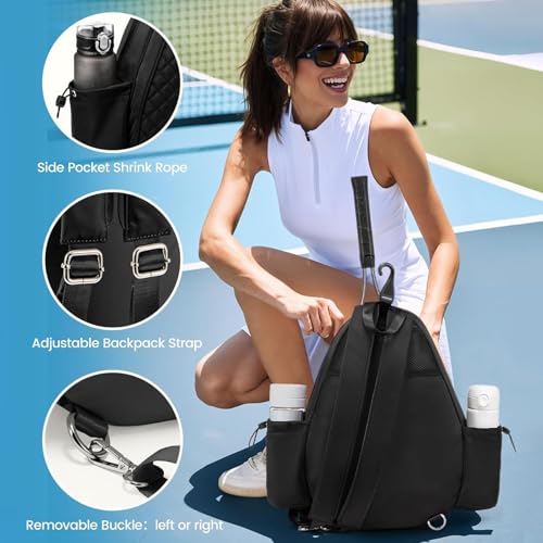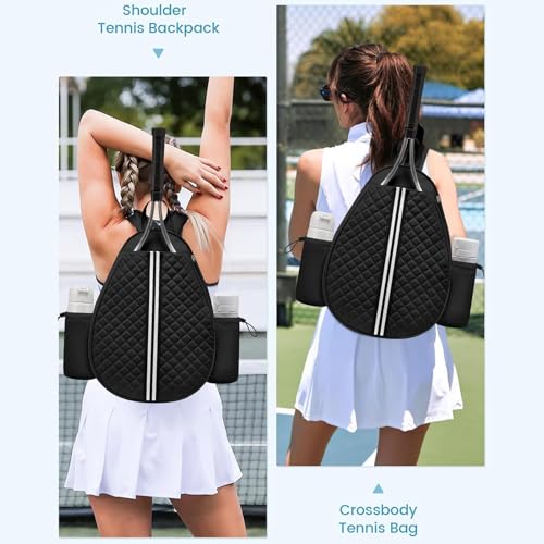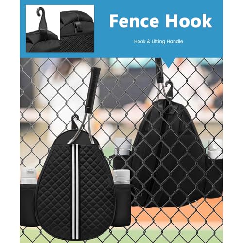doorslay Professional Tennis Backpack, Quilted Tennis Racket Bag Backpack Racket Holder, Water Bottle Slot for Women, Shoe Compartment, Fence Hook for Women Racquet, Paddles, Badminto