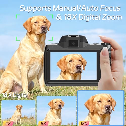Dsoon Digital Camera,4K 64MP Cameras for Photography with 4”0 Touch Screen, 18X Digital Zoom Autofocus Photography Shoot Camera with Dual-Lens,2 Batteries,64GB TF Card,Lens Hood