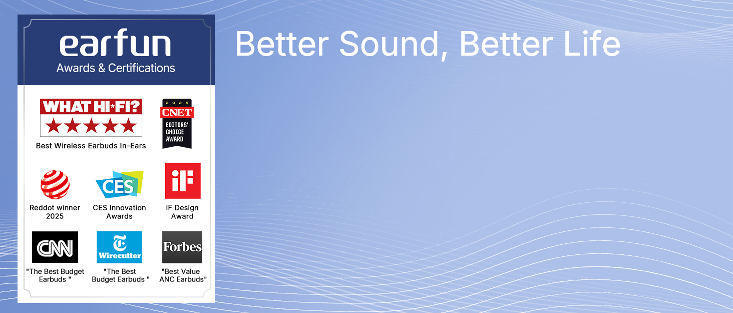 EarFun is the most awarded new audio brand. We have earned 100+ awards from 10+ authoritative audio media.