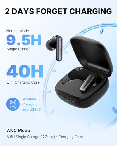Long Battery Life with Charging Case. Enjoy up to 9.5 hours of playtime per charge and 40 hours with the case in normal mode, or 6.5 hours and 27 hours with ANC on.