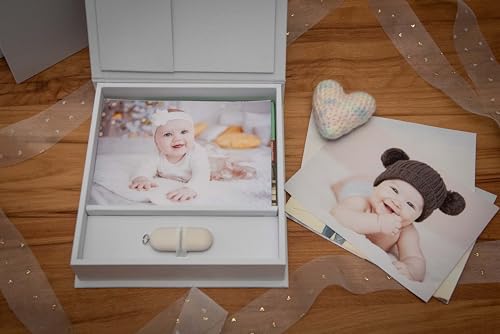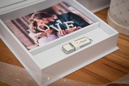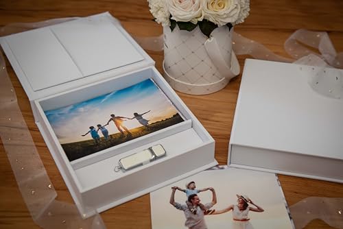 Elegant Photo Box with USB Slot. Gift Box for USB Sticks and Photo Prints 13 x 18 cm (without USB) Storage Box Wedding Box, Memory Box, Photo Gift (White, 21 x 21 x 5 cm)