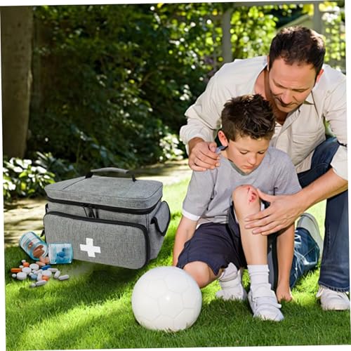 Description: Prepare for any emergency with this versatile Empty First Aid Bag. Measuring 11.42×7.68×6.89 inches, this medicine bag is crafted from waterproof polyester, making it an essential companion for home, office, car, travel, and outdoor adventures. Its spacious interior and multiple pockets allow for easy organization of all your medicine supplies, ensuring that everything is within reach when you need it most. The bag features a sturdy top handle and smooth zipper closure for secure and convenient access. Features:. First Aid Bag. -Color: Grey. -Material: Polyester. -Size: 29×19.5×17.5 cm/11.42×7.68×6.89 inch.