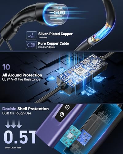 【Durable Build & Broad Compatibility】Cable passed 20,000 bend tests; control box resistant to 1.5-ton crush and 1m drop. Type 2 connector rated for 15,000 plugs. Compatible with most European and UK EVs/PHEVs (IEC 62196-2).