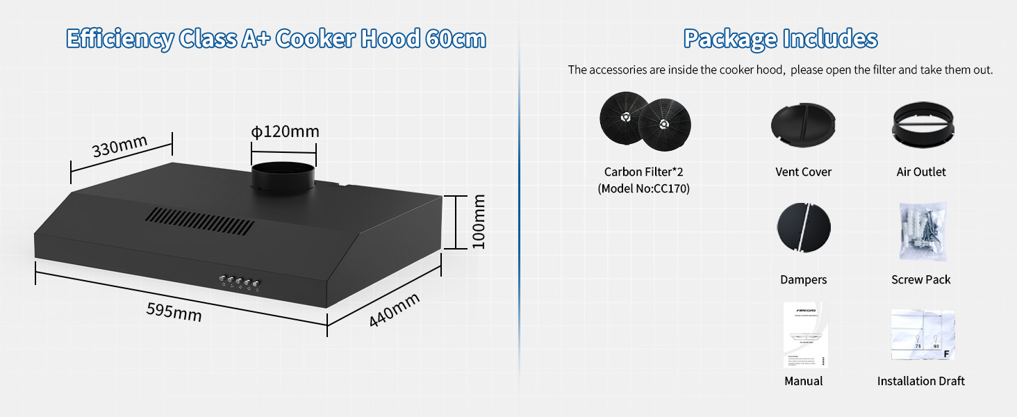 FIREGAS Efficiency Class A+ Cooker Hood 60cm-Package Includes