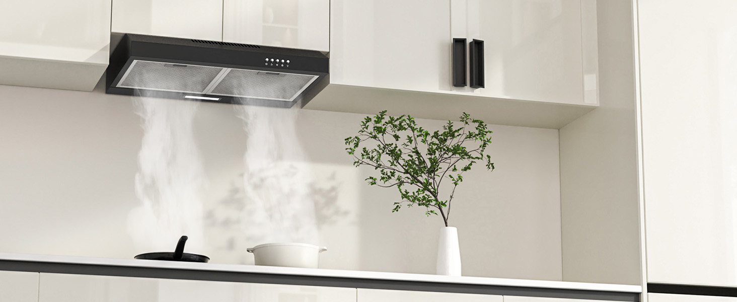 - Flexible installation & dual exhaust mode: wall or under cabinet installation. Works in outdoor drain or recycling mode with included carbon filters.