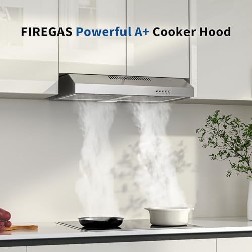 FIREGAS 60cm Stainless Steel Extractor Hood – Brushless Motor, 3 Speed, 250 m³/h, Energy Class A+, Low Noise Level, Wall or Under Cabinet Installation [Energy Class A+]