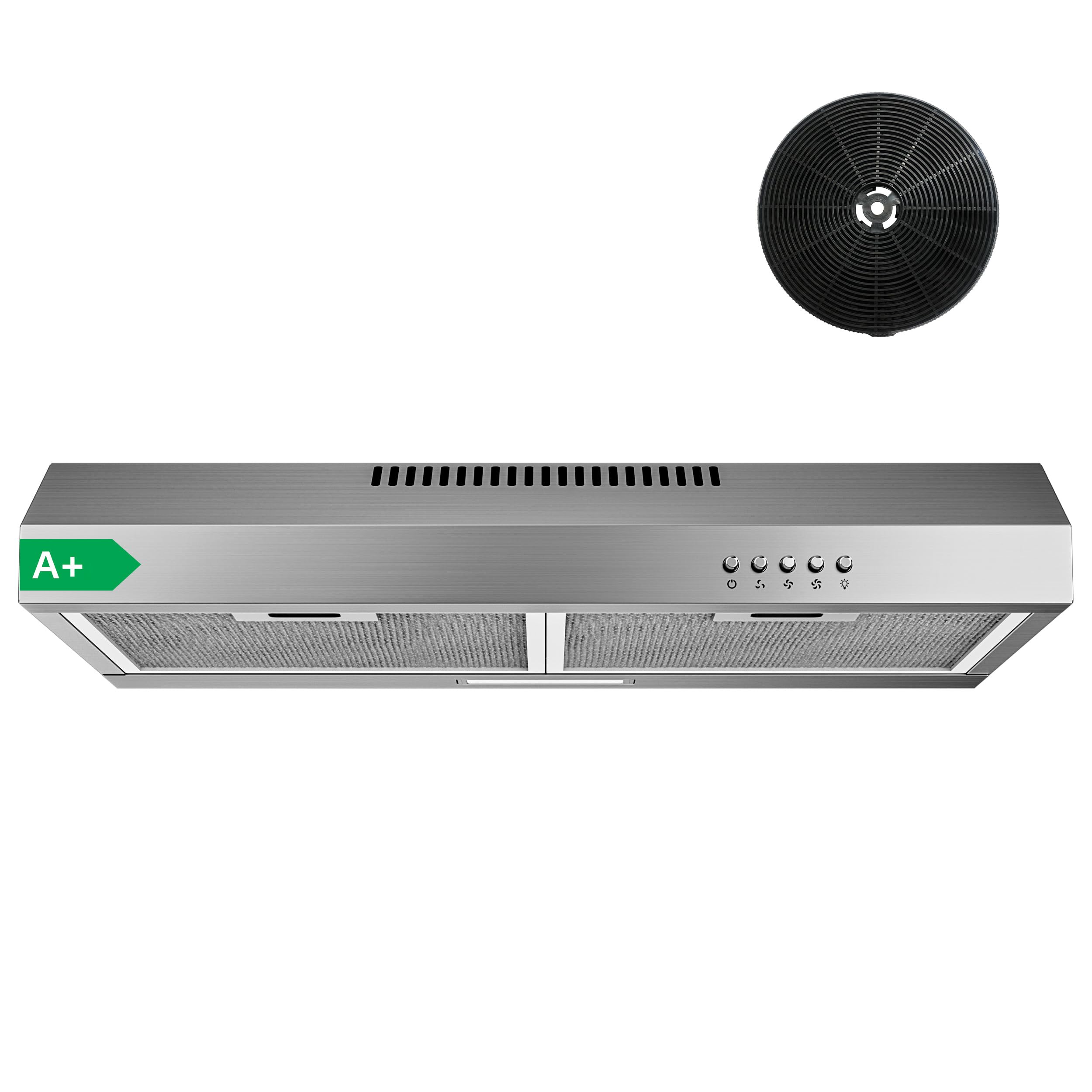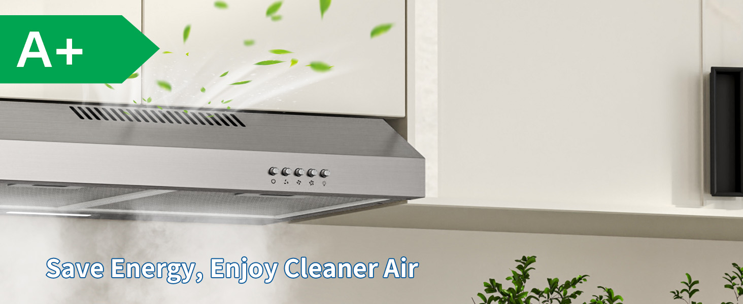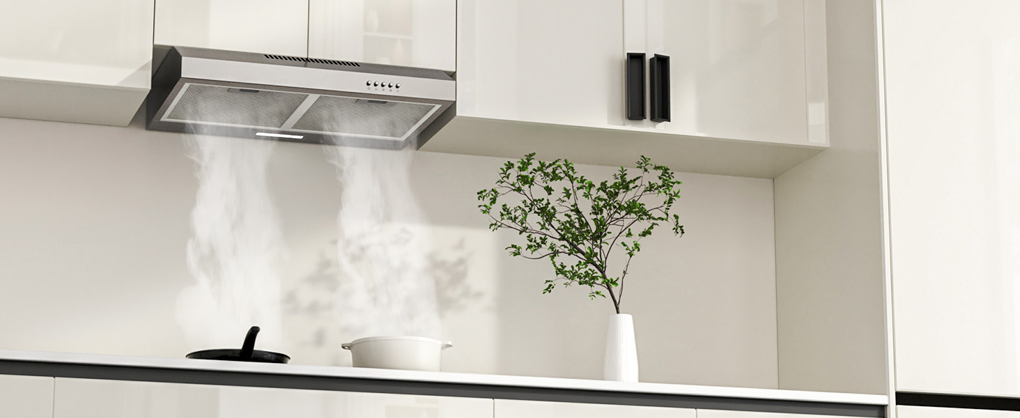 - Dual installation & evacuation mode: Flexible installation: under cabinet or wall. Works in outdoor exhaust mode or recycling mode with included carbon filters.