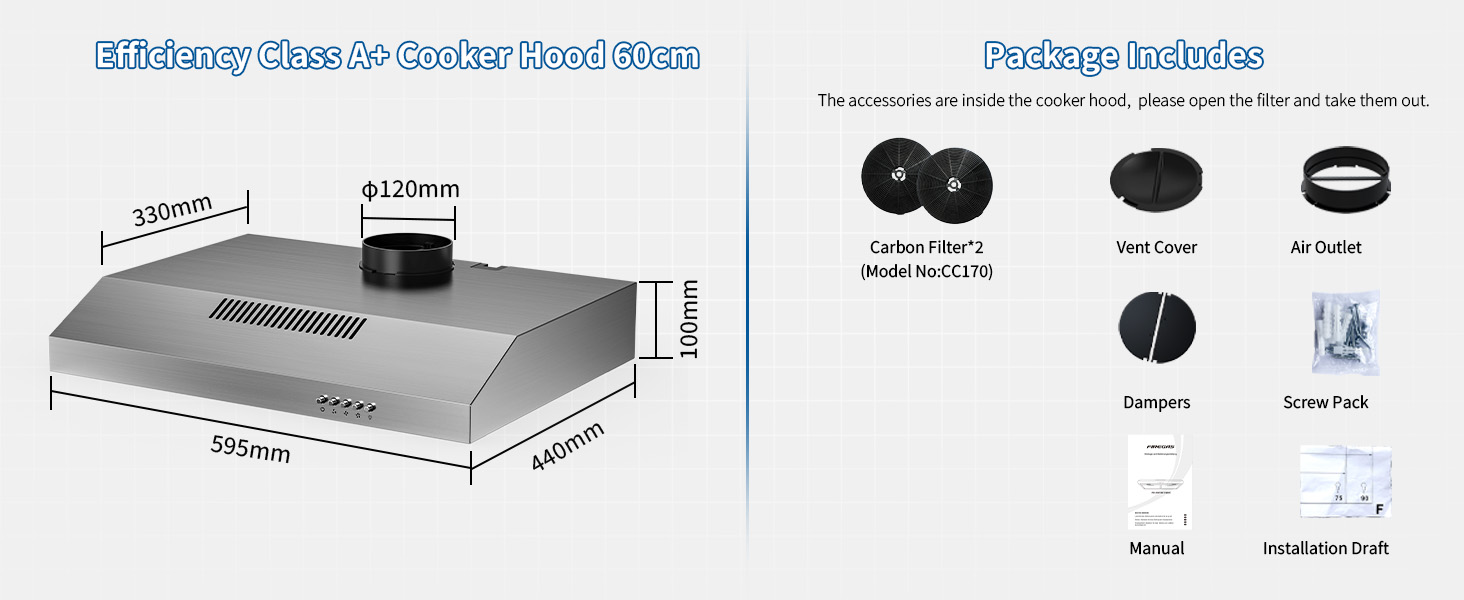 FIREGAS Efficiency Class A+ Cooker Hood 60cm-Package Includes