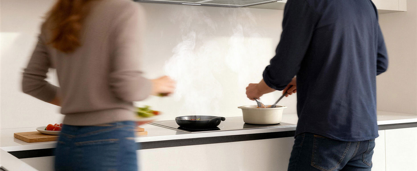 - Brushless motor – quiet and economical: Equipped with a durable brushless motor, this hood ensures stable suction with a reduced consumption of only 10 kWh/year and a noise level ≤56 dB.