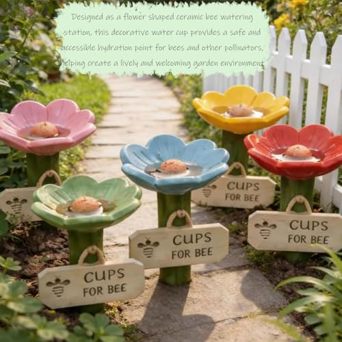 - Flower-Shaped Ceramic Bee Watering Station for Pollinators: Designed as a flower shaped ceramic bee watering station, this decorative water cup provides a safe and accessible hydration point for bees and other pollinators, helping create a lively and welcoming garden environment.