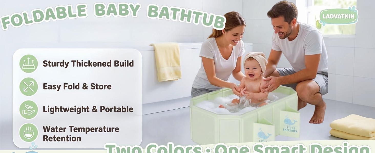 - FOLDABLE BABY BATHTUB FOR SMALL SPACES: This foldable baby bathtub collapses flat when not in use, helping save space in small bathrooms, apartments, or homes with limited storage. A practical space-saving baby bath for everyday family use.