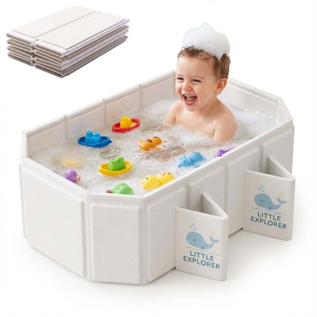 - DURABLE & CHILD-FRIENDLY MATERIAL: Made from sturdy, child-safe plastic with smooth edges, this collapsible kids bathtub is built for daily use. Comfortable for children and easy for parents to handle and maintain.
