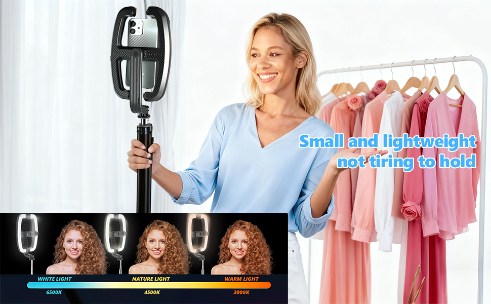 - 【Easy Installation and Portable】Unlike other fill light tripods, which are bulky, heavy, and difficult to carry, they require tedious installation before shooting. This led light phone holder folds up to only 12 * 5.9 inches and weighs 0.88lb, making it easy to fold into a backpack and quickly unfold to fit your phone for use