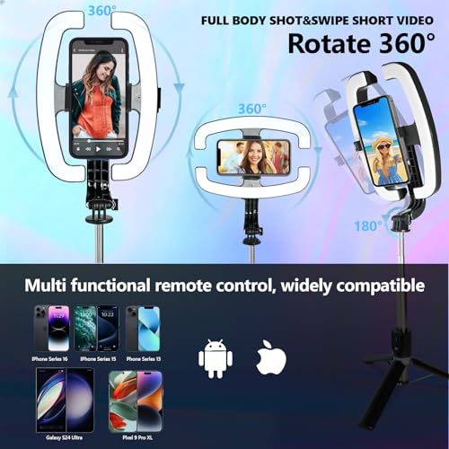 - 【Wide Compatibility Tripod & Selfie Stick】Selfie Tripod Stand comes complete with a phone holder that can stretch up to 3.7", accommodating a wide range of smartphones, while the wireless Bluetooth shutter works flawlessly with Android/Apple smartphones, including iPhone 17/16/15/14/13,and more, perfect for selfies, photographers, group shots, travel, live streaming, and content creation on YouTube, TikTok